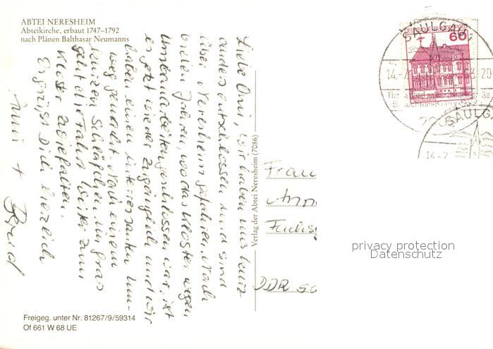 72965820 alte Postkarte Neresheim Fliegeraufnahme Abtei postalisch gelaufen Erhaltung siehe scans [LiesaD40] KatCode: 11110008136045