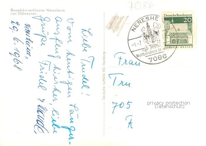 73163461 alte Postkarte Neresheim Fliegeraufnahme mit Benediktinerkloster postalisch gelaufen Erhaltung siehe scans [WerneD78] KatCode: 11110008136045