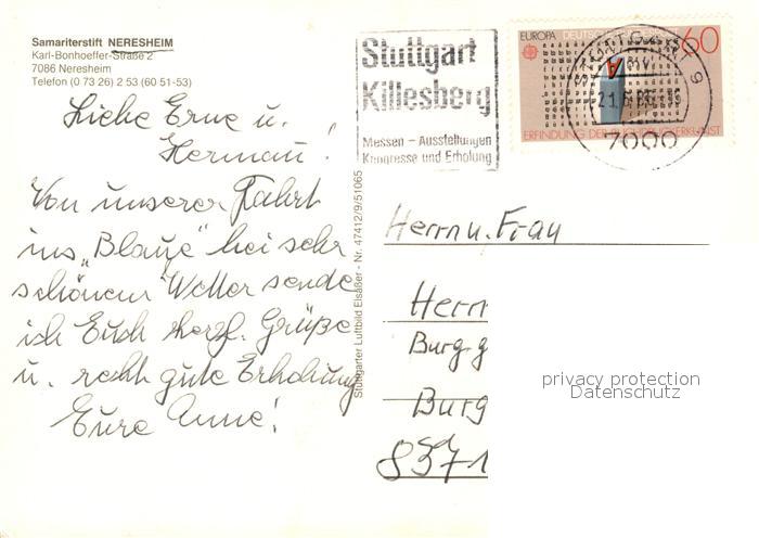 73109190 alte Postkarte Neresheim Fliegeraufnahme Samariterstift postalisch gelaufen Erhaltung siehe scans [KathaD81] KatCode: 11110008136045