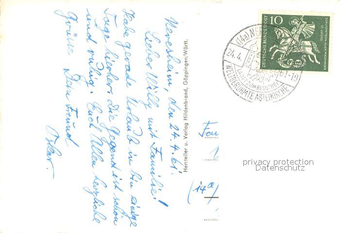 73670090 alte Postkarte Neresheim Kloster Fliegeraufnahme postalisch gelaufen Erhaltung siehe scans [FriedD77] KatCode: 11110008136045