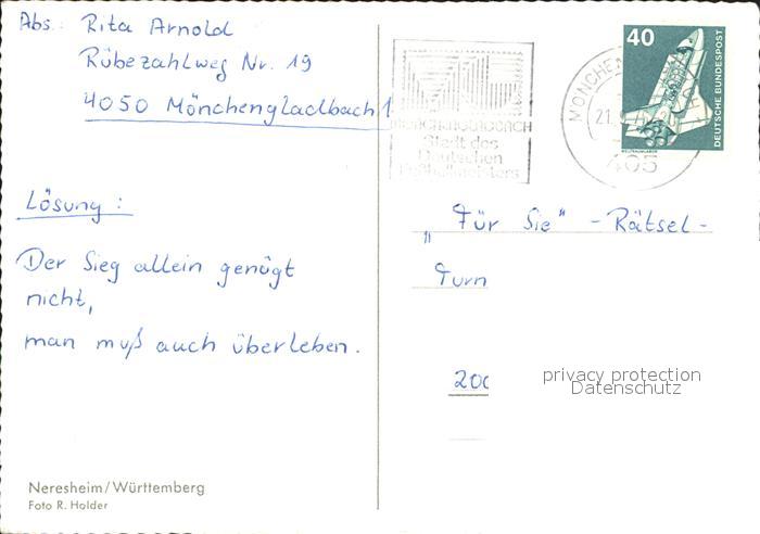 72024381 alte Postkarte Neresheim postalisch gelaufen Erhaltung siehe scans KatCode: 11110008136045