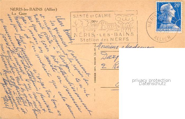 13604409 carte postale Neris-les-Bains La Gare postalisch gelaufen Erhaltung siehe scans [WerneD78] KatCode: 11170003103195