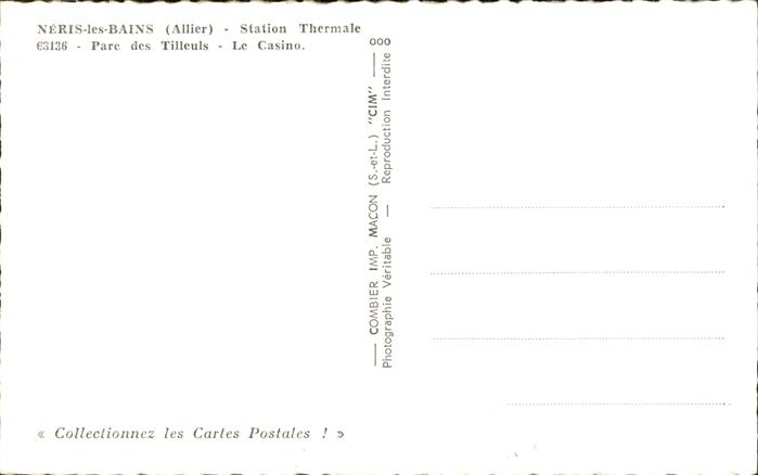 11359620 Neris-les-Bains Station Thermale Parc des Tilleuls Le Casino KatCode 11170003103195