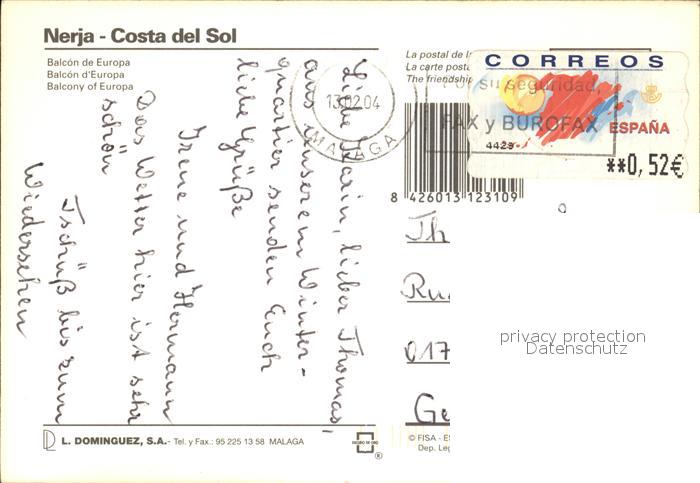 old postcard Nerja Costa del Sol Balcon de Europa postalisch gelaufen Erhaltung siehe scans