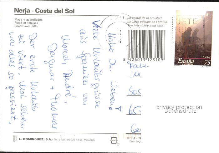 old postcard Nerja Costa del Sol Strand Klippen postalisch gelaufen Erhaltung siehe scans
