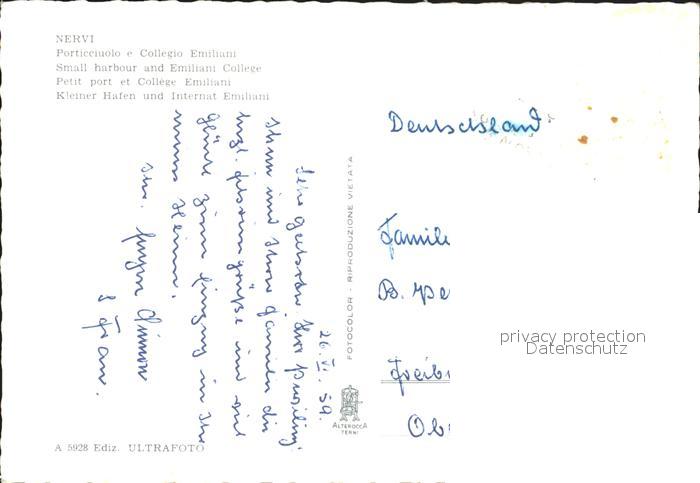 old postcard Nervi Hafen Internat Emiliani postalisch gelaufen Erhaltung siehe scans