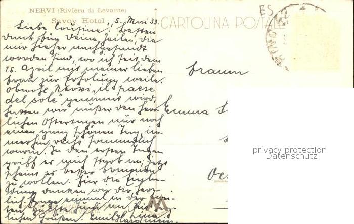 old postcard Nervi Savoy Hotel Park postalisch gelaufen Erhaltung siehe scans