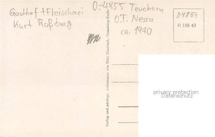 33700707 Nessa Teuchern Gasthof FleischereiKurt Rossberg Saal Dorfstrasse Kirche und Kriegerdenkmal 1914-18 postalisch nicht gelaufen Erhaltung siehe scans [WerneD78] KatCode: 11110015084365