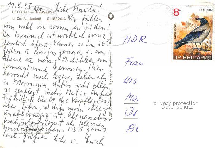 old postcard Nessebar Nessebyr Nessebre postalisch gelaufen Erhaltung siehe scans [LiesaD40]