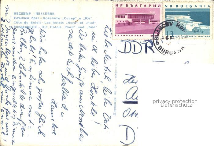 old postcard Nessebar Nessebyr Nessebre Die Hotels Nord und Sued postalisch gelaufen Erhaltung siehe scans