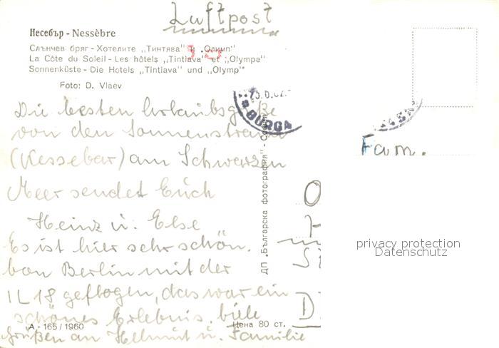 13598001 Nessebar Nessebyr Nessebre Hotels Tintlava und Olymp postalisch gelaufen Erhaltung siehe scans [WerneD78] old postcard Wern Katcode 11090