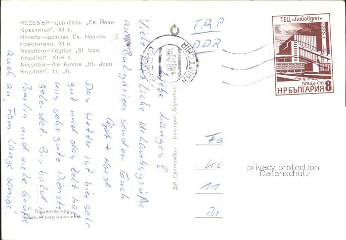 old postcard Nessebar Nessebyr Nessebre Kirche Hl. Joan postalisch gelaufen Erhaltung siehe scans