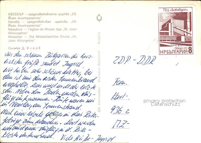 old postcard Nessebar Nessebyr Nessebre Mittelalterliche Kirche Hl Joan Aliturgetos postalisch gelaufen Erhaltung siehe scans