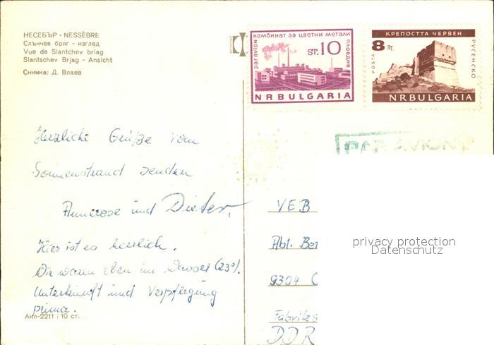 old postcard Nessebar Nessebyr Nessebre Slantschev Brjag postalisch gelaufen Erhaltung siehe scans