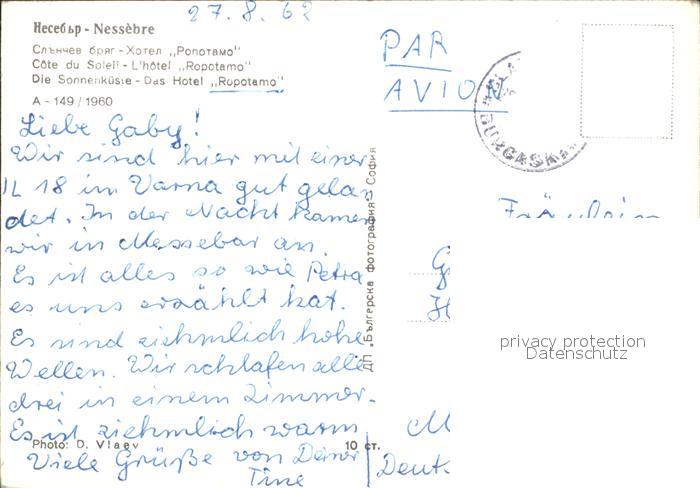 old postcard Nessebar Nessebyr Nessebre Sonnenkueste Hotel Ropotemo postalisch gelaufen Erhaltung siehe scans