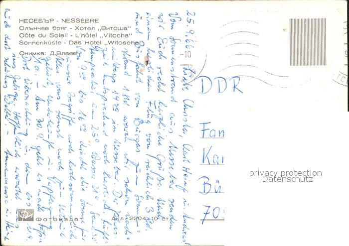 old postcard Nessebar Nessebyr Nessebre Sonnenkueste Hotel Witoscha postalisch gelaufen Erhaltung siehe scans [LiesaD40 kt122box]