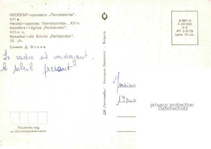 74031279 Nessebre Nessebar Nessebyr BG Eglise Pantokrator XIIIe siècle postalisch nicht gelaufen Erhaltung siehe scans [FriedD77] KatCode: 11090