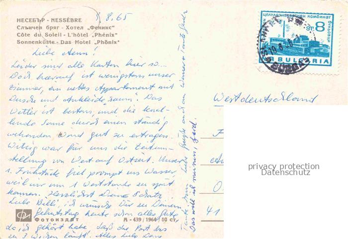 74088010 old postcard Nessebre Nessebar Nessebyr BG Hotel Phoenix postalisch gelaufen Erhaltung siehe scans [WerneD78] KatCode: 11090