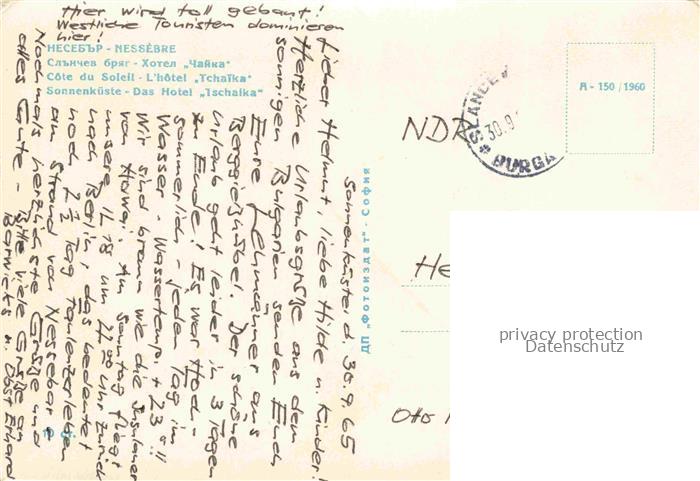 74026312 old postcard Nessebre Nessebar Nessebyr BG Hotel Tschalka an der Sonnenkueste postalisch gelaufen Erhaltung siehe scans [FriedD77] KatCode: 11090