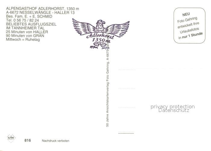 73203968 Nesselwaengle Tirol Alpengasthof Adlerhorst postalisch nicht gelaufen Erhaltung siehe scans [PaolaD17] KatCode: 11390331070824