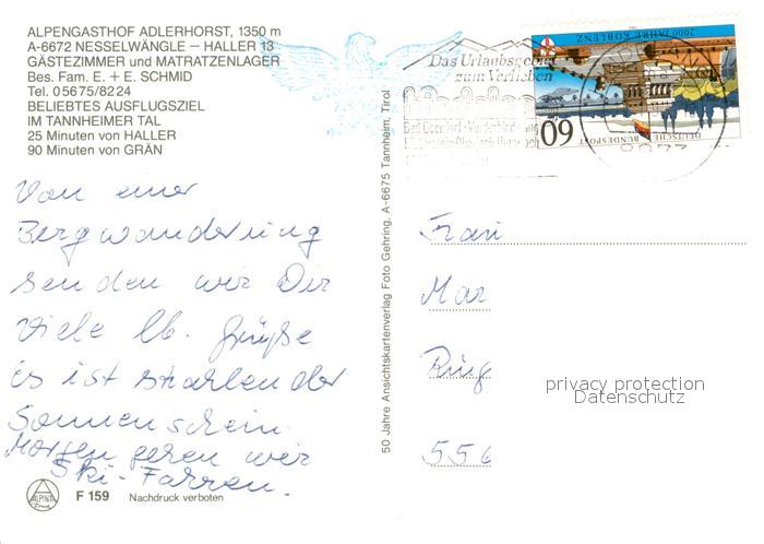 73173989 alte Postkarte Nesselwaengle Tirol Alpengasthof Adlerhorst postalisch gelaufen Erhaltung siehe scans [NatalD47] KatCode: 11390331070824