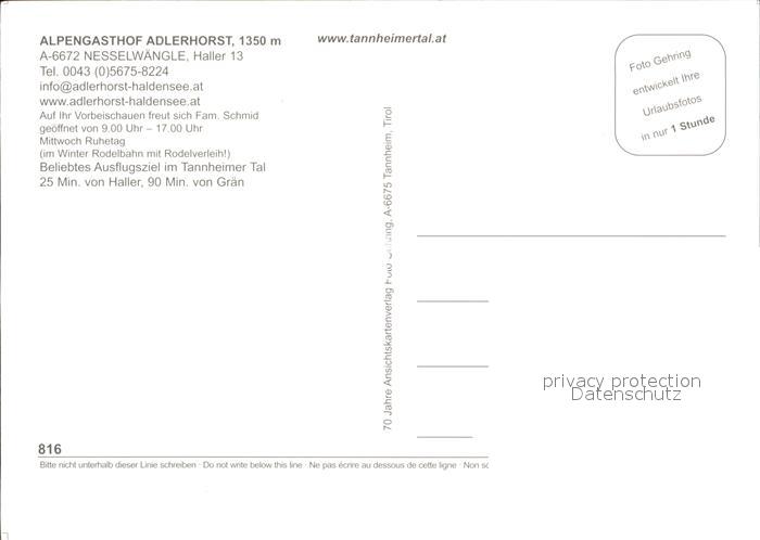 72391754 Nesselwaengle Tirol Alpengasthof Adlerhorst postalisch nicht gelaufen Erhaltung siehe scans KatCode: 11390331070824