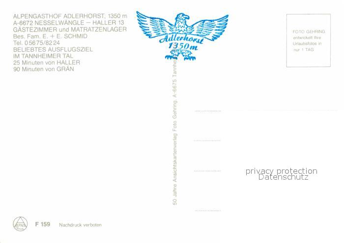 72750622 Nesselwaengle Tirol Alpengasthof Adlerhorst See Haller Graen postalisch nicht gelaufen Erhaltung siehe scans [LiesaD40] KatCode: 11390331070824