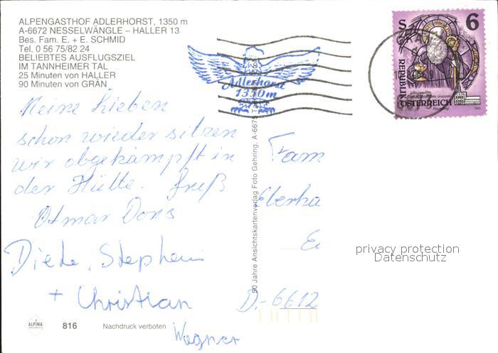 72495885 alte Postkarte Nesselwaengle Tirol Alpengasthof Adlerhorst Terrasse postalisch gelaufen Erhaltung siehe scans KatCode: 11390331070824
