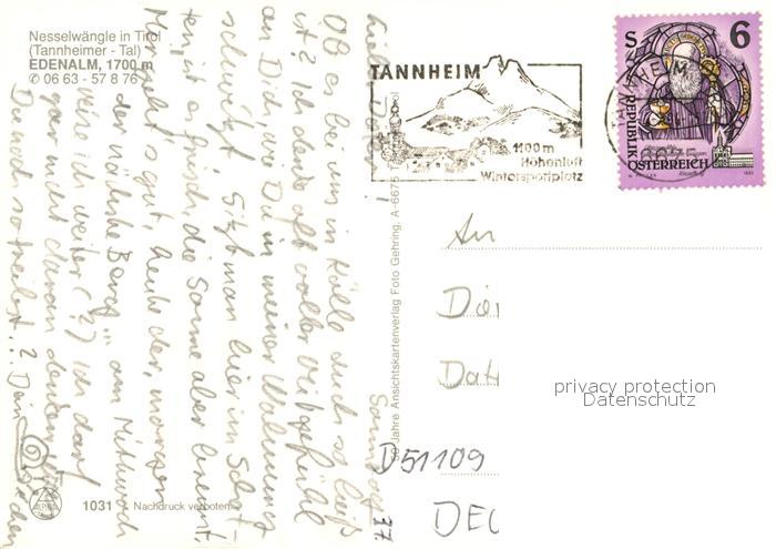 73359987 alte Postkarte Nesselwaengle Tirol Edenalm Jausenstation Tannheimer Tal postalisch gelaufen Erhaltung siehe scans [FriedD77] KatCode: 11390331070824