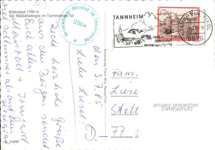 72485284 alte Postkarte Nesselwaengle Tirol Edenalpe im Tannheimer Tal postalisch gelaufen Erhaltung siehe scans KatCode: 11390331070824
