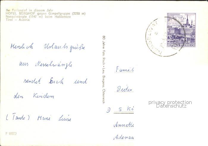 72450513 alte Postkarte Nesselwaengle Tirol Gasthof Cafe Berghof gegen Gimpelgruppe postalisch gelaufen Erhaltung siehe scans KatCode: 11390331070824