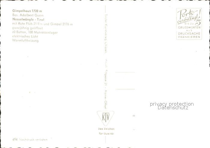72395657 Nesselwaengle Tirol Gimpel Gimpelhaus Rote Flueh postalisch nicht gelaufen Erhaltung siehe scans KatCode: 11390331070824
