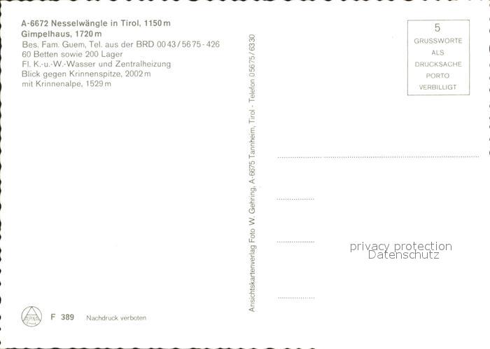 72157084 Nesselwaengle Tirol Gimpelhaus Blick gegen Krinnenspitze Krinnenalpe postalisch nicht gelaufen Erhaltung siehe scans KatCode: 11390331070824