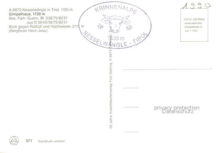 73219752 Nesselwaengle Tirol Gimpelhaus Blick gegen Rotflueh und Hochwieser Bergfeuer Herz Jesu postalisch nicht gelaufen Erhaltung siehe scans [FriedD77] KatCode: 11390331070824