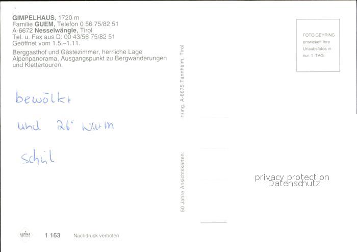 72395661 Nesselwaengle Tirol Gimpelhaus Gipfel postalisch nicht gelaufen Erhaltung siehe scans KatCode: 11390331070824