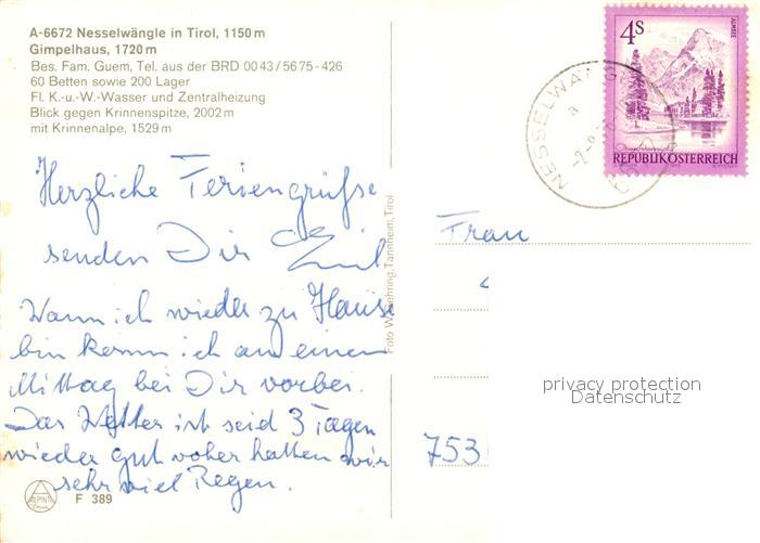 73176151 alte Postkarte Nesselwaengle Tirol Gimpelhaus Krinnenspitze Krinnenalpe postalisch gelaufen Erhaltung siehe scans [NatalD47] KatCode: 11390331070824