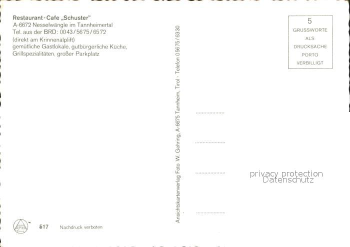 71985394 Nesselwaengle Tirol Restaurant Cafe Schuster postalisch nicht gelaufen Erhaltung siehe scans KatCode: 11390331070824
