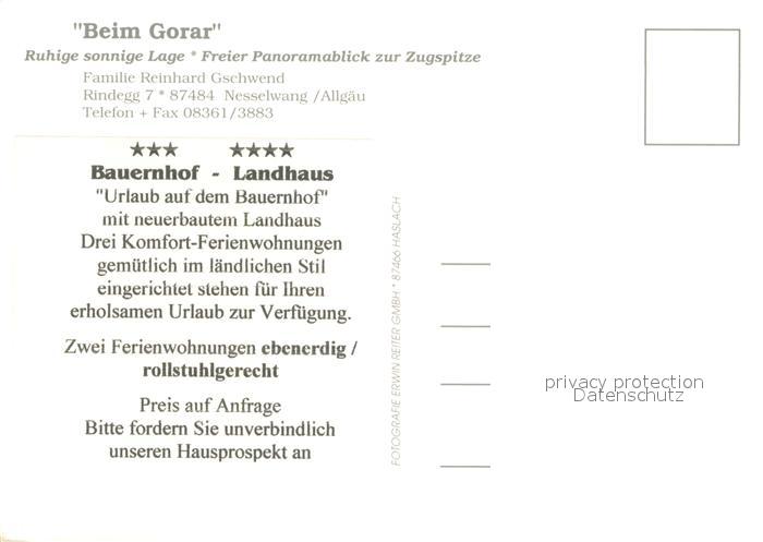 73652980 Nesselwang Allgaeu Bayern Beim Gorar Komfort Ferienwohnungen postalisch nicht gelaufen Erhaltung siehe scans [WerneD78] Wern Katcode 11110009777153
