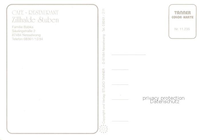73791307 Nesselwang Allgaeu Bayern Cafe Restaurant Zillhalde Stuben Gaststube Zimmer Panorama postalisch nicht gelaufen Erhaltung siehe scans [WerneD78] Wern Katcode 11110009777153
