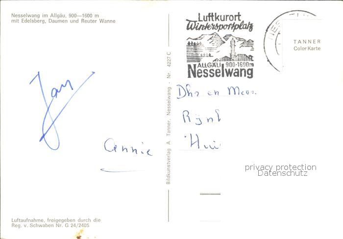 72505334 alte Postkarte Nesselwang Allgaeu Bayern Fliegeraufnahme Edelsberg Daumen und Reuter Wanne postalisch gelaufen Erhaltung siehe scans KatCode: 11110009777153