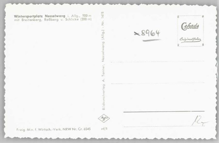 40246278 Nesselwang Allgaeu Bayern Fliegeraufnahme Rossberg Schlicke * 1955 postalisch nicht gelaufen Alte Ansichtskarte Postkarte Katcode 11110009777153