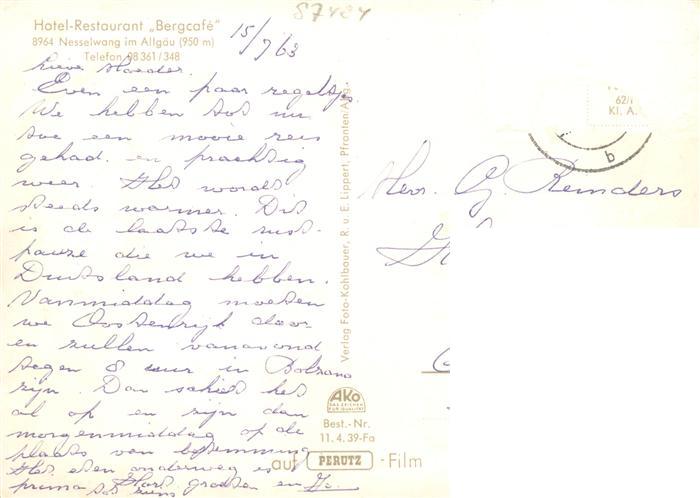 73904960 alte Postkarte Nesselwang Allgaeu Bayern Gaestehaus Bergcafe Hotel postalisch gelaufen Erhaltung siehe scans [WerneD78] KatCode: 11110009777153