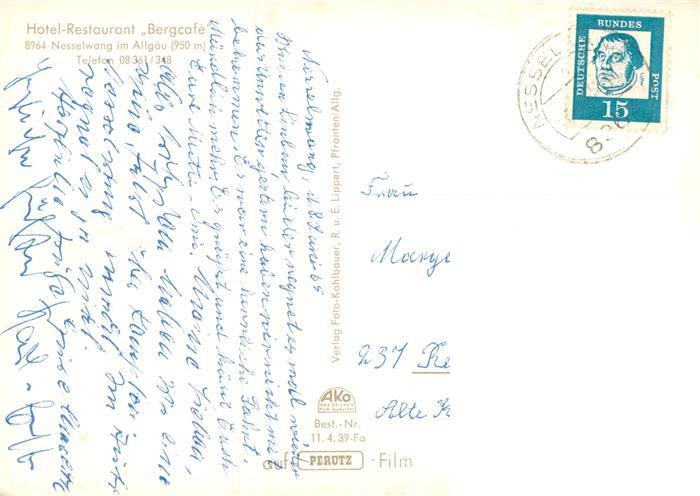 73915424 alte Postkarte Nesselwang Allgaeu Bayern Hotel Restaurant Bergcafe postalisch gelaufen Erhaltung siehe scans [FriedD77] KatCode: 11110009777153