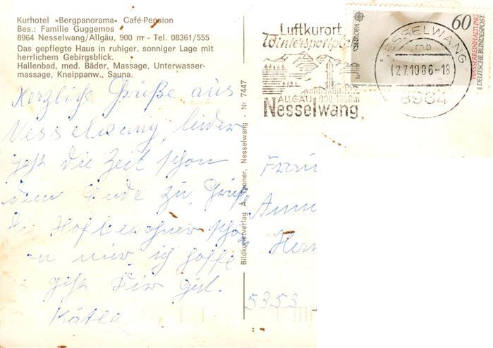 73879950 alte Postkarte Nesselwang Allgaeu Bayern Kurhotel Bergpanorama Cafe Pension postalisch gelaufen Erhaltung siehe scans [WerneD78] KatCode: 11110009777153