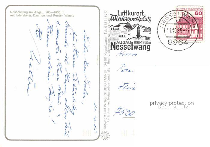 72833583 alte Postkarte Nesselwang Allgaeu Bayern mit Edelsberg Daumen und Reuter Wanne Allgaeuer Alpen Fliegeraufnahme postalisch gelaufen Erhaltung siehe scans [FriedD77] KatCode: 11110009777153