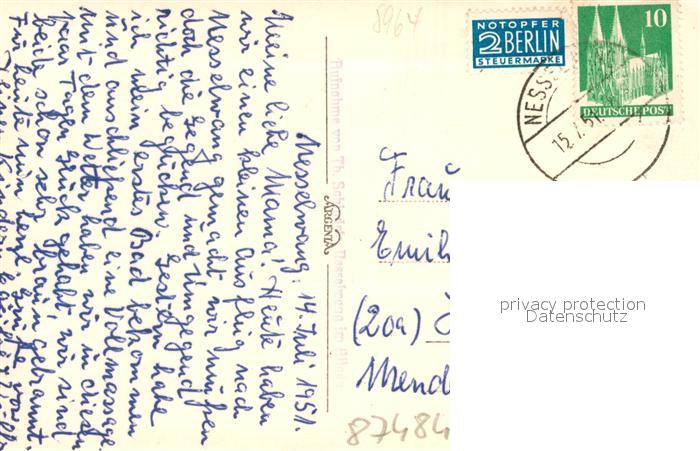 43039132 Nesselwang Allgaeu Bayern Ortsbild mit Kirche Hoehenluftkurort Alpenpanorama postalisch gelaufen Erhaltung siehe scans [FriedD77] alte Postkarte Frie Katcode 11110009777153