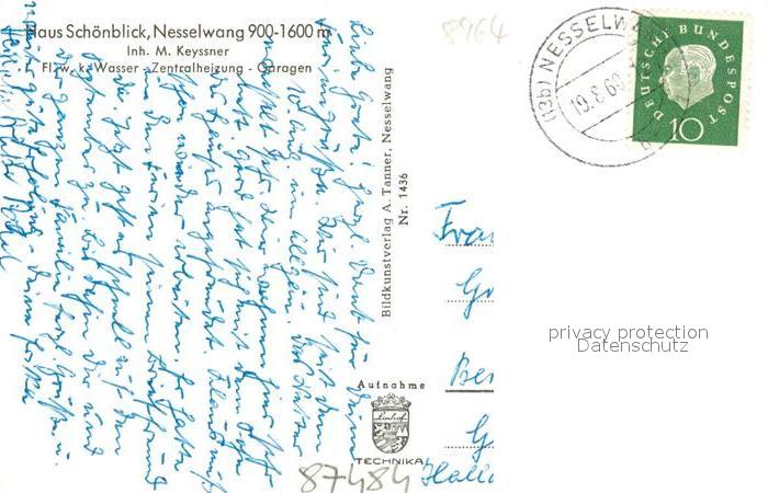 43039133 Nesselwang Allgaeu Bayern Pension Haus Schoenblick postalisch gelaufen Erhaltung siehe scans [FriedD77] alte Postkarte Frie Katcode 11110009777153