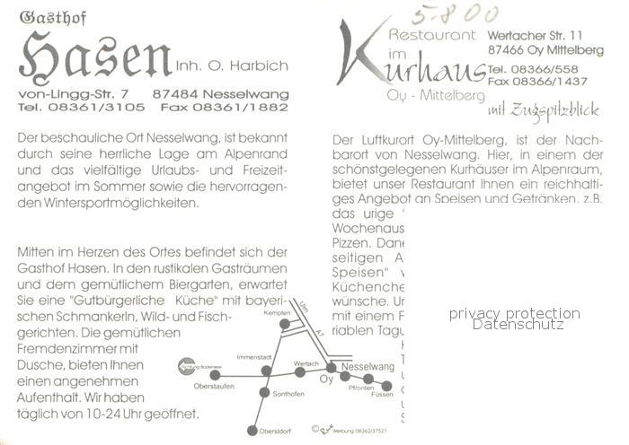 73653023 Nesselwang Allgaeu Bayern Restaurant im Kurhaus Gasthof Hasen postalisch nicht gelaufen Werbekarte (keine Postkarte) Erhaltung siehe scans [WerneD78] Werbekarte (keine Postkarte) Wern Katcode 11110009777153