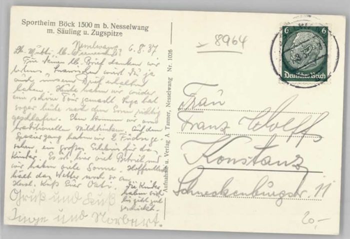 40246305 Nesselwang Allgaeu Bayern Saeuling Zugspitze Sportheim Boeck x 1937 postalisch gelaufen Alte Ansichtskarte Postkarte alte Postkarte Katcode 11110009777153