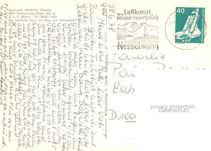 73760453 Nesselwang Allgaeu Bayern Sportcafe Martin Gastraeume postalisch gelaufen Erhaltung siehe scans [FriedD77] alte Postkarte Frie Katcode 11110009777153